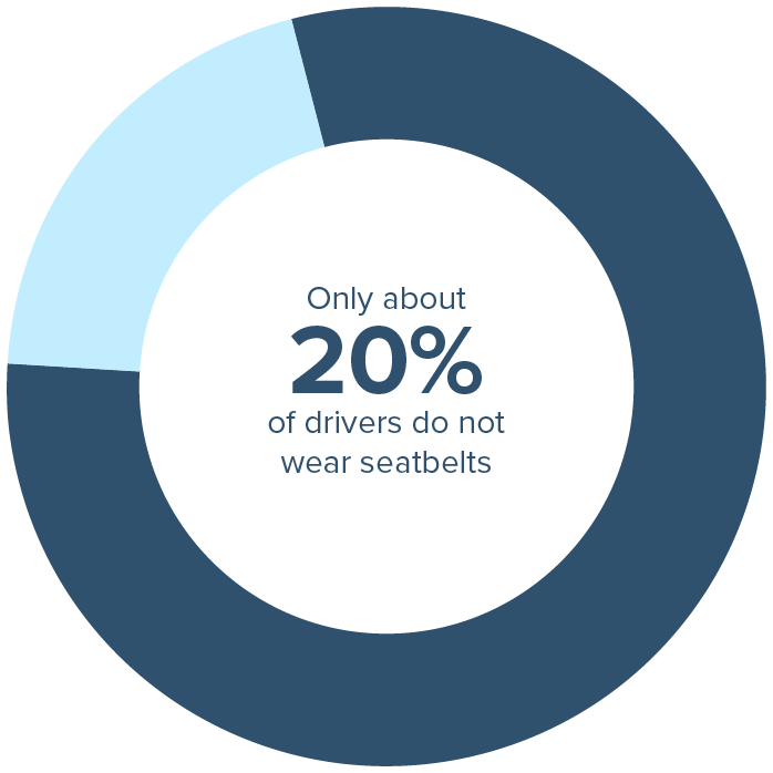 • Only about 20% of drivers do not wear seatbelts, but they make up 48.2% of fatalities.